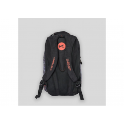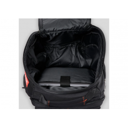 Esta mochila de color negro, con detalles en plata y rojo, está diseñada bajo las especificaciones y necesidades de jugadores profesionales. Está fabricado con tejidos de alta resistencia, y cuenta con costuras y cremalleras reforzadas para una mayor durabilidad. Además, su espalda acolchada y asas ergonómicas ofrecen una gran comodidad.