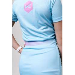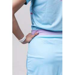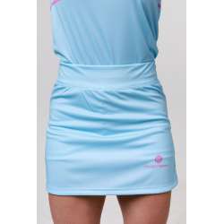 Pollera de juego colore celeste, short interior y banda de compresión en la cintura.